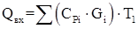 где Gi –мольный поток вещества, cpi - теплоемкость вещества, T1 – начальная температура входящего потока.