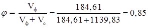 Ввиду того, что в начале процесса, реакционная масса представляет собой суспензию, то соответственно мощность перемешивания дисперсных систем будет отличаться от мощности перемешивания гомогенных жидкостей как из-за изменения плотности и вязкости, так из-за изменения условий обтекания лопастей мешалки. Поэтому целесообразно определить эти параметры: Объемная доля дисперсной фазы на приходящий поток: