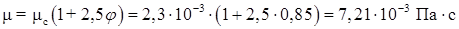Динамическая вязкость дисперсии μ для суспензии для φ < 1, определяется по формуле