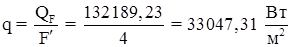 где ΔТ – средняя разность температур, ΔТ=50 о С; k – коэффициент теплообмена, k = 270 Вт/(м2 ·К).