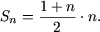 Замечание 2. Этот пример можно было решить и иначе. Действительно, сумма 1 + 2 + 3 + ... + n есть сумма первых n членов арифметической прогрессии с первым членом a1