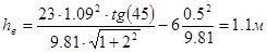где Кш - коэффициент характеризующий шероховатость откоса принимаю укрепление откоса монолитным бетоном 0.9 т - заложение насыпи на подтопляемых участках не менее 2
