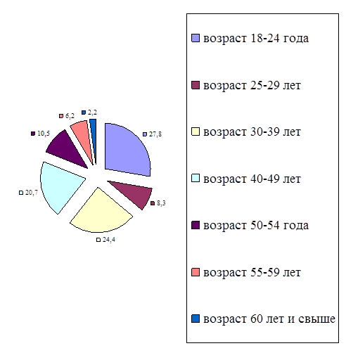 Диаграмма 1 - Уровень образования работников ЗАО «Универсам «Юбилейный-92» по состоянию на период 2009 года Рассмотрев уровень образования персонала торгового предприятия, необходимо остановиться на изучении половозрастного состава работников. Несмотря на невысокую текучесть кадров, удельный вес молодежи достаточно высокий. Данный показатель можно проанализировать на диаграмме 2. Все вышеописанное позволяет сделать вывод, что в торговом предприятии постоянно внедряются передовые технологии.