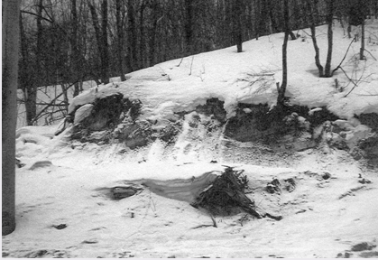 Рисунок 2- Состояние склона и его залесенность, км 1628 пк 16274+00 влево 20м 1.5 Геологическое строение Геологическое строение района характеризуется отложениями Волго – Уральской антеклизы, в строении осадочного чехла которой принимают участие породы верхнего палеозоя и покровные отложения кайнозоя. Верхняя часть разреза отложений палеозойской системы, имеющая практическое значение для строительства, представлена пермскими отложениями карбонатно – терригенной и терригенной красноцветной формации уфимского яруса поздней перми. Породы этой формации представлены переслаиванием известняков, доломитов, мергелей и карбонатных аргиллитоподобных глин. Покровные отложения кайнозоя широко развиты на междуречьях и склонах долины. В разрезе преобладают делювиально – элювиальные супеси, суглинки, изредка глины, большей частью щебенистые и измененные процессами облессования. Мощность этих отложений изменяется от 1м на водоразделах, до 20м на склонах крупных речных долин (рисунок 3).