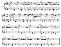(Лист) Изобретательность в данной области, способность находить остроумные аппликатурные решения трудных звуковых или моторно-технических задач – одна из характернейших примет пианистической одаренности и мастерства. Вот ещё один пример такой изобретательности: