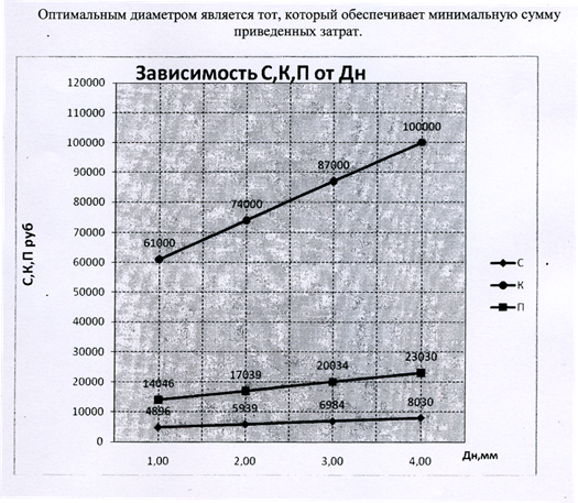 Оптимальным диаметром является тот, который обеспечивает минимальную сумму приведенных затрат.