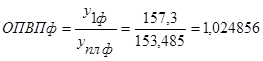 Относительный показатель выполнения плана (ОПВП) – отношение фактической (отчетной) величины показателя у1 к запланированной на тот же период времени его величине (упл )