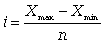 де i - величина рівного інтервалу; xmax, xmin- найбільше і найменше значення ознаки; n - число груп. Якщо не вимагається попереднього встановлення числа груп, то використовується інший спосіб визначення величини рівного інтервалу - по формулі Стерджесса