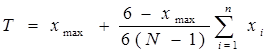 где хтах — наивысшая из полученных частных балльных оценок xi ; N — общее число факторов; х — балльная оценка по i -му из учитываемых факторов (частная балльная оценка); п — число учитываемых факторов без учета одного фактора х max