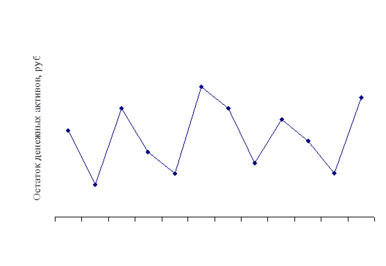 Рис.3.1 Действие модели Миллера - Орра Чтобы продемонстрировать, как работает модель, предположим, что краткосрочные инвестиции в ценные бумаги имеют доходность 4 % годовых и что фирма несет издержки в 30 руб. каждый раз, когда покупает или продает эти ценные бумаги. Предположим также, что входящий и выходящий потоки денежных средств не являются регулярными, а отклонения ежедневного чистого денежного потока установлены в размере 90 846 руб., что эквивалентно стандартному отклонению в 301 руб. Руководство фирмы определило минимальный остаток денег на счетах на случай неблагоприятных ситуаций в размере 10 000 руб. Тогда целевая величина денежных активов Z