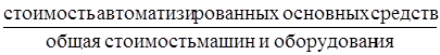 = Чем коэффициент амортизации выше, тем хуже состояние основных средств, то есть повышается физический износ основных средств, что, в свою очередь, оказывает влияние на коэффициент годности. Аналогичное происходит и в отношении коэффициента годности, не позволяющего в ряде случаев давать точную оценку текущей стоимости основных средств, что является результатом влияния следующих факторов: метод начисления амортизации в организации; проведение переоценки основных средств; консервация и восстановление основных средств. Коэффициент обновления (Кобн ) и коэффициент автоматизации основных средств (Кавт ) отражают уровень их технического оснащения. Расчет этих коэффициентов осуществляется по ниже следующим формулам [30]. Коэффициент автоматизации основных средств (Кавт ): Кавт