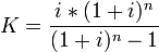 FV – будущая стоимость ссуды (Future Value). PV – текущая стоимость ссуды (Present Value). r – процентная ставка. T – период ссуды в днях Ty – количество дней в году FV=40000$*(1+0,19)^4 = 80213,568$Следовательно ежемесячные платежи будут составлять 80213,568$/(4*12)=1671,116$ Б) Формула аннуитетных платежейКоэффициент аннуитета рассчитывается по следующей формуле: