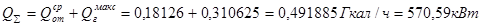 Q г cp = 1.75 х 50 х 0.001 = 0.0875 Гкал/ч = 101,5 кВт,