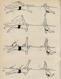 6. Задачи для формирования и совершенствования умений и навыков при обучении плаванию способом "кроль на спине"1. Создать зрительное представление о технике плавания способом "кроль на спине" и сообщить сведений о его спортивном, прикладном и оздоровительном значении путем демонстрации, показа и рассказа. 2. Ознакомить с положением тела, дыханием, формой и характером гребковых движений плавания способом "кроль на спине". 3. Научить принятию и сохранению положения тела при плавании способом "кроль на спине". 4. Научить дыханию при плавании способом "кроль на спине". 5. Научить движениям ногами при плавании способом "кроль на спине". 6. Научить движениям руками при плавании способом "кроль на спине". 7. Научить согласованию движений при плавании способом "кроль на спине" в следующем порядке: согласование движений ног с дыханием; согласование движений рук с дыханием; согласование движений ног, рук и дыхания; плавание с полной координацией движений. 8. Закрепить и совершенствовать технику плавания способом "кроль на спине". [6]