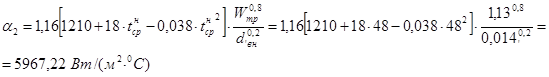Коэффициент теплоотдачи от стенки трубки к нагреваемой воде: