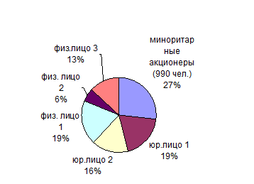 Рисунок 6 Структура собственности ОАО «БзАТИ» Действующая на БзАТИ система управления и организационная структура Рисунок 7 (Приложение Г) сформированы в период создания предприятия (в 60-х годах прошлого столетия) и по существу не претерпела качественных изменений до настоящего времени, оставаясь системой управления ярко выраженного иерархического типа с линейно-функциональной организацией управления бизнес-процессами. Вместе с тем кризис результатов деятельности на предприятии привел к необходимости внесения ряда организационных и кадровых изменений, направленных на повышение качества исполнения таких управленческих функций, как маркетинг и сбыт, организация производства, инженерное обеспечение. Выделен в самостоятельную структуру отдел маркетинга с приданием ему функций исследования рынка и планирования производства и продаж. Создан единый блок финансово-экономических и учетно-отчетных служб.