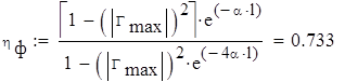 Согласование считается удовлетворительным, если КБВ в рабочем диапазоне не хуже 0,3 ... 0,5. В данном случае согласование составило 0,22. 11. Рассчитываем КПД линии передачи: