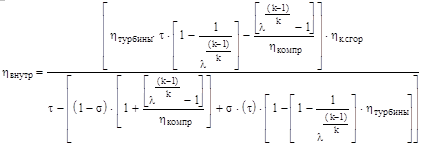 Т.к. теперь все величины нам известны, определяем внутренний КПД ГТУ с регенерацией теплоты: