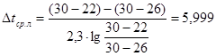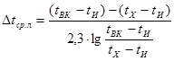 где Кк - коэффициент теплопередачи горизонтального кожухотрубного конденсатора на фреоне. В зависимости от расхода охлаждающей воды КК = 400…650 Вт/м2; tср.л - среднелогарифмическая разность температур, которая в данном случае равна