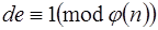 Выбирается целое число e, взаимно простое со значением функции Вычисляется число d