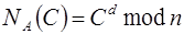 Алгоритм дешифрования: Принимается зашифрованное сообщение С, для расшифровки сообщения применяется секретный ключ (d,n):