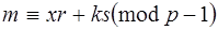 Режим подписи сообщенияПри работе в режиме подписи предполагается наличие фиксированной хеш-функции h, значения которой лежат в интервале (1, p − 1). Подпись сообщенийДля подписи сообщения M выполняются следующие операции: Вычисляется дайджест сообщения M: m = h (M). Выбирается случайное число 1 < k < p − 1 взаимно простое с p-1 и вычисляется С помощью расширенного алгоритма Евклида вычисляется число s, удовлетворяющее сравнению: