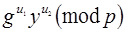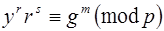 Подписью сообщения M является пара (r,s). Проверка подписиЗная открытый ключ (p,g,y), подпись (r,s) сообщения M проверяется следующим образом: Проверяется выполнимость условий: 0 < r < p и 0 < s < p − 1. Если хотя бы одно из них не выполняется, то подпись считается неверной. Вычисляется дайджест m = h (M). Подпись считается верной, если выполняется сравнение: