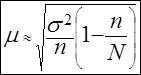 Если n достаточно велико, то данное отношение близко к единице. Например, при n = 100 оно равно 1,01, а при n = 500 оно равно 1,002. Поэтому с определённой долей погрешности формулу расчёта средней ошибки выборки можно представить в следующем виде.