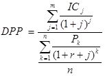 При враховуванні часового аспекту в розрахунок приймаються грошові потоки, дисконтовані по показнику WACC, а відповідна формула для розрахунку дисконтованого строку окупності (DPP) має вид: