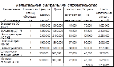 Выручка от продажи продукции, себестоимость и прибыль от продаж увеличилась 40%. 2. Расчет капитальных затрат на внедрение новой техники. Производственного оборудования, транспортных средств, инструмента и приспособлений Организация закупает оборудование, транспортные средства в компаниях города Кирова и области: ООО «Домостроительный комбинат», ООО «Стройинтехмонтаж», ОАО «Советская ПКМ-15». Капитальные затраты на внедрение работ складываются из стоимости: производственного оборудования, транспортных средств, дорогостоящих инструментов и приспособлений. Таблица 7