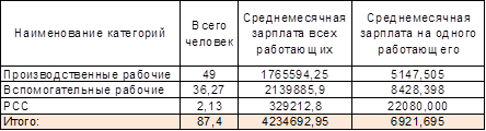 Теперь необходимо рассчитать и оформить в виде таблицы среднегодовую и среднемесячную заработную плату по участку в целом (общий фонд заработной платы разделить на численность всех работающих на участке) и по отдельным категориям работников (таблица 14). Таблица 14 – Среднегодовая и среднемесячная зарплата по участку, руб.