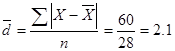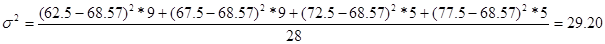 де А – середина інтервалу (варіанта), якій відповідає найбільша частота, (тобто між числами 42,5 та 57,5): і – величина інтервалу: Отже: