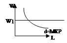 рис.1 рис. 2 Рис. 1. Крива сукупного продукту змінного фактора Рис. 2. Криві середнього та граничного продуктів При залученні у виробництва нової порції ресурсу, продуктивність якої більша за середню, відбудеться збільшення і середнього показника. Iнавпаки, якщо виявиться, що гранична продуктивність змінного фактора менша, ніж середня, то відповідне залучення зменшить середній показник. Саме тому максимальне значення середній продукт набуває в точці перетину кривих середнього та граничного продуктів, тобто при АР = МР. А граничний продукт досягає свого максимального значення в точці А, потім починає зменшуватися до нуля і навіть до від'ємних значень. Починаючи з певного обсягу збільшення одного з факторів виробництва, при незмінних інших факторах відбувається зменшення граничного продукту цього фактора (закон спадної граничної продуктивності). 28. Загальна характеристика ринку факторів виробництва Ресурси задовольняють потреби виробника не безпосередньо, а опосередковано: виробник не купуватиме працю чи капітал, якщо вони не можуть бути використані продуктивно. Тому попит на будь-який ресурс залежить від продуктивності ресурсу при створенні товару. У той же час, попит навіть на найпродуктивніший і найуніверсальніший ресурс буде близький до нуля, якщо товар, виготовлений з нього, не матиме збуту. Отже, попит на певний ресурс залежить також від попиту та ціни на виготовлений з нього товар, що реалізується на ринку кінцевих продуктів. Наприклад не тому дороге вино, що дорогий виноград, з якого воно виготовлене, а навпаки: виноградники, дорогі тому, що з них виготовляють це вино. Таким чином, попит на ресурси є похідним попитом, тобто таким, що залежить від попиту на товари, що виробляються з їх допомогою. Проаналізуємо ситуацію, коли виробник купує ресурси та продає продукт на конкурентному ринку. Яквідомо, в короткостроковому періоді діє закон спадної граничної продуктивності змінного фактора, тобто, починаючи з певного моменту, кожна нова додаткова одиниця змінного фактора призводить до меншого приросту продукту, ніж попередня. Граничний продукт у грошовому вираженні (МRР) — цепродукт загальної виручки внаслідок використання кожної додаткової одиниці змінного фактора виробництва: М R Р =∆Т R / ∆ L . Граничні витрати на ресурси (М R С) — це величина, на яку зростають сукупні витрати при збільшенні залучених ресурсів на одиницю: М R С = ∆ТС /∆ L . Щоб максимізувати прибуток, фірма повинна використовувати додаткові одиниці будь-якого виду ресурсів до тих пір, поки кожна наступна одиниця дає приріст валової виручки фірми більший ніж приріст її сукупних витрат. Межею діяльності залучення додаткових ресурсів буде точка, в якій врівноважуються граничний продукт у грошовому вираженні та граничні витрати на ресурс: М R Р = М R С. Оскільки виробник купує ресурси на конкурентному ринку, то ціни на них залишатимуться незмінними і не залежатимуть від кількості залучених ресурсів. Щодо ресурсу праці, то граничні витрати на ресурс будуть дорівнювати заробітної платі (W), тоді: М R Р = W Наприклад, якщо зарплата становить 20 грн., то для ситуації, що наведена в табл.1, доцільно залучати 6 працівників, оскільки сьомий працівник коштуватиме виробникові 20 грн., а приріст валової виручки буде лише 16 грн. Для моделі конкурентного ринку ресурсів крива попи