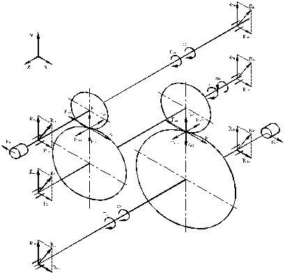 Рисунок 8. Схема нагружения подшипников тихоходного вала Определение эквивалентной динамической нагрузки подшипников Эквивалентная динамическая нагрузка, Н: