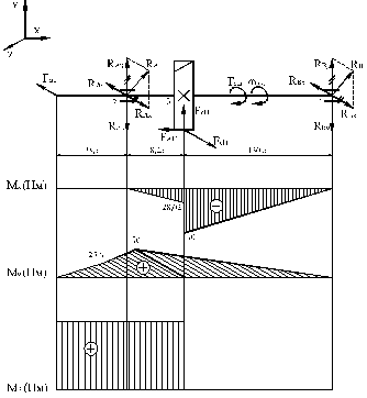 Рисунок 2. Схема нагружения валов 3.4. Расчёт валов 3.4.1. Проектный расчёт валов Быстроходный вал. Из рекомендации применяем термически обработанную среднеуглеродистую сталь 45. НВ=200