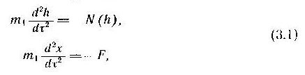 где m1- масса частицы; h - глубина внедрения мм;τ—время с; N — нормальное усилие Н; F касательное усилие Н. Контактное взаимодействие и относительное движение соударяющихся тел в значительной степени определяются характером их поверхностей. Интегральной оценкой затрат энергии, связанных с касательиым перемещением частицы, может быть коэффициент трения. Считая, что касательное усилие обусловлено только трением ( F = f ( N )) и силы трения не влияют на распределения давления на площади контакта, систему (3.1) можно записать в виде