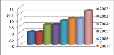 Вывод Подводя итоги рассмотрению заболеваемости населения России, необходимо отметить ухудшение качества здоровья населения. Выражается это ухудшение в росте числа таких тяжелых хронических заболеваний, как гипертоническая болезнь, ишемическая болезнь сердца, стенокардия, инфаркт миокарда, онкологическая патология, болезни мочеполовой системы. Одна из наиболее серьезных причин складывающейся ситуации - постарение населения и груз тяжелых событий недавнего и отдаленного прошлого, вызывающих у многих, особенно пожилых людей, периодически возникающий эмоциональный стресс. Результат этих сложных событий - увеличение заболеваний пожилого и старческого возраста. Об этом же говорит и рост инвалидности. Для снижения заболеваемости болезнями, а также смертности от них, обусловленной воздействием загрязненного атмосферного воздуха, в первую очередь, необходимо принять меры по снижению выбросов автотранспорта и энергетических установок. Развитие национального проекта «Здоровье» оказало значительное влияние на демографическую ситуацию в стране. За два года коэффициент рождаемости увеличился на 11%, а коэффициент смертности населения снизился на 9%. Однако негативные тенденции уменьшения населения России пока сохранятся, и чтобы преодолеть этот демографический тренд, понадобится еще много лет. Таким образом, современная патология свидетельствует о множестве проявлений и форм заболеваемости населения, которые могут привести к снижению трудового и интеллектуального потенциала, к существенным ограничениям биологических и социальных функций отдельных групп населения, в том числе их участия в улучшении социально–экономической ситуации в стране. Необходима более активная ориентация всей службы медицинской помощи на эти новые проявления в характере заболеваемости населения. В целях обеспечения устойчивого социально-экономического развития Российской Федерации, одним из приоритетов государственной политики должно являться сохранение и укрепление здоровья населения на основе формирования здорового образа жизни и повышения доступности и качества медицинской помощи. Использованная литература 1. Травма. Российская энциклопедия по охране труда. 2. Международный классификатор болезней МКБ-10.Электронная версия. 3. Сайт федеральной службы государственной статистики 4. Здоровье населения России и деятельность учреждений здравоохранения в 2001 г: Статистические материалы. М.: Минздрав РФ, 2002. 5. Медведев С.Ю., Перельман М.И. Туберкулёз в России. "Туберкулёз и вакцинопрофилактика", №1 Январь-февраль 2002 г. 6. Применение методов статистичечкого анализа для изучения общественного здоровья и здравоохранения под ред. Чл.-корр. РАМН проф В.З. Кучеренко. ГЭОТАР-Медицина. 2006г. 7. Лисицын Ю.П. Общественное здоровье и здравоохранение: Учебник для студ.мед.вузов – М.: ГЭОТАР – Медиа, 2007. 8. . Основы законодательства РФ об охране здоровья граждан. – М., 1993 (доп. 2005 г.). |