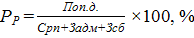 где РЗ − рентабельность продукции, %; Пв – валовая прибыль, тыс. грн.; В– выручка от реализации продукции, тыс. грн.; Задм− административные затраты, тыс. грн.; Зсб – затраты на сбыт, тым. грн. Широкое применение этот показатель получил в рыночной экономике.Может рассчитываться по отдельным видам продукции и в целом по предприятию. При определении его уровня в целом по предприятию целесообразно учитывать не только реализационные, но и внереализационные доходы и расходы, относящиеся к основной деятельности. Рентабельность реализованной продукции определяемая как отношение прибыли от операционной деятельности к сумме себестоимости реализованной продукции, административных затрат и затрат на сбыт. Рассчитывается по формуле (1.9).
