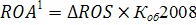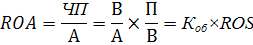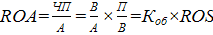 где П – прибыль от обычной деятельности до налогообложения; ЧП – чистая прибыль; В – выручка от реализации продукции; А – совокупные активы; Коб – коэффициент оборачиваемости совокупных активов; ROS – рентабельность продаж. Из представленной модели видно, что рентабельность совокупных активов предприятия зависит от двух факторов первого порядка: чистой рентабельности продаж, оборачиваемости активов. Для проведения факторного анализа рентабельности совокупных активов можно использовать различные приемы элиминирования. Мы используем один из наиболее простых — метод абсолютных разниц. Сразу рассчитывается абсолютное изменение коэффициента рентабельности совокупных активов и факторных показателей (1.22):
