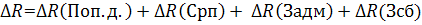 где R− обобщающий показатель;Срп ; Задм ; Зсб − влияющие факторы; Схема анализа формула (1.33):