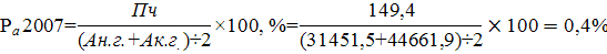 где Ра − рентабельность активов, %; Пч – чистая прибыль, тыс. грн.; Ан.г. и Ак.г . − активы предприятия (валюта баланса), на начало и конец года соответственно тыс. грн. Уменьшение уровня рентабельности активов может свидетельствовать о падающем спросе на продукцию предприятия и о перенакоплении активов. На рентабельности активов влияют два фактора: рентабельность продаж и оборачиваемость активов. Рентабельность собственного капитала (финансовая рентабельность)− это своего рода замыкающий показатель эффективности функционирования предприятия. Вся деятельность, которого должна быть направлена на увеличение суммы собственного капитала и повышение уровня его доходности. Рентабельность собственного капитала — это показатель прибыли на вложенный капитал, и он рассчитывается по формуле (1.3).