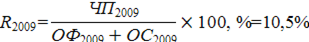 где Робщ – рентабельность, %; Пч – сумма прибыли, тыс. грн.; ОФ – стоимость основных фондов, тыс. грн.; ОС– стоимость оборотных средств, тыс. грн. Как видно из общей формулы рентабельности производства факторами роста её будут: — величина прибыли; — стоимость и эффективность использования основных фондов; — стоимость и эффективность использования оборотных средств. Чем выше прибыль, чем с меньшей стоимостью основных фондов и оборотных средств она достигнута и более эффективно они используются, тем выше рентабельность производства, а значит выше экономическая эффективность функционирования предприятия. Рентабельность активов (экономическая рентабельность) характеризует уровень прибыли, генерируемой всеми активами предприятия, находящимися в его использовании по балансу. Данный показатель рассчитывается по формуле (1.2).