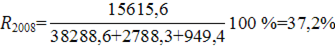 Сложив значения изменений за счет каждого фактора, получим общее изменение значения коэффициента рентабельности собственного капитала: