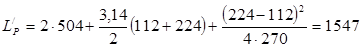 де Δ1 =0,5π(D1 +D2 )=0,5·3,14(112+224)=527 та Δ2 =0,25(D2 -D1 )2 =0,25(224-112)2 =3136 тому