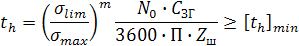 де σlim =9…10МПа – обмежена границя витривалості пасу при базі випробувань N0 =107 циклів навантажень m=8 – показник ступеня кривої втоми СЗГ – коефіцієнт, що враховує різний ступінь впливу напружень згину у пасі на ведучому та веденому шківах