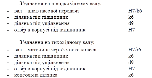 Ущільнення валів забезпечуємо резиновими манжетами. Для обох валів використовуємо манжети І типу ГОСТ 8752-79: dxDxH х40х8 х70х10 В нижній частині корпуса викреслюємо пробку для спуску масла та масловказівник. Для редукторів товщину стінки розраховуємо за формулою