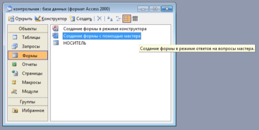 60. Создаю форму по таблице носитель. Выбираю таблицу носитель и из доступных полей перекидываю данные в выборочные поля, нажимаю далее