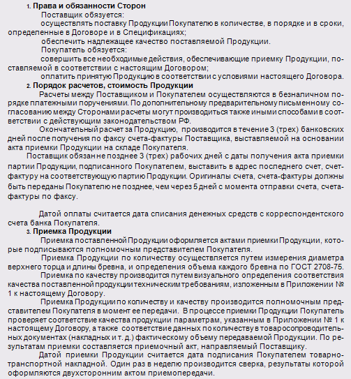 Оглавление Введение Глава 1. Общие положения о купле-продаже 1.1 Понятие договора купли-продажи 1.2 Стороны договора купли-продажи 1.3 Предмет договора купли-продажи 1.4 Условия договора купли-продажи Глава 2. Разновидности договора купли-продажи 2.1 Договор розничной купли-продажи 2.2 Договор поставки 2.3 Договор поставки для государственных нужд 2.4 Договор контрактации 2.5 Договор энергоснабжения 2.6 Договор продажи недвижимости 2.7 Договор продажи предприятия Заключение Список литературы Приложения Введение В настоящее время государство уделяет особое внимание развитию предпринимательской деятельности, в частности малому и среднему бизнесу. Так как предприниматель в процессе реализации собственных интересов, заключаемых в стремлении получения максимальной прибыли, способствует прогрессивному развитию и всего общества. Это выражается в стабилизации экономики, расширению рынка труда, формировании налоговых бюджетов и ряде других благоприятных факторов. Весомый процент от всех предприятий в нашей стране, занимают торговые предприятия, которые являются основным звеном сферы обращения товаров от производителей к потребителям посредством именно купли – продажи, а значит, данная тема является особенно актуальной. Не смотря на то, что далеко не каждый из нас реализует свое право на занятие предпринимательской деятельностью, закрепленное в Конституции РФ, у каждого из нас есть свои как биологические, так и социальные потребности, то есть все люди, живя в цивилизованном мире, являются потребителями. Актуальность данной темы заключается в том, что договор купли – продажи является одним из самых распространенных, а значит и нормы регулирующие правоотношения, связанные с данным договором широко применяются на практике всеми субъектами гражданского права. Глава 1. Общие положения о купле-продаже 1.1 Понятие договора купли-продажи Еще в древнейшие времена, с появлением частной собственности, возникает и получает большое распространение договор, направленный на обращение вещей, на переход их из одного хозяйства в другое. По праву римскому, договор купли-продажи (empito-vendito) представлялся таким договором купли-продажи, которым одно лицо обещало другому предоставить известный предмет за известную сумму денег (pretium), а другое лицо обещало первому уплатить за этот предмет известную сумму денег. Действующее законодательство, а именно п. 1 ст. 454 ГК РФ определяет данный договор таким образом – по договору купли-продажи одна сторона (продавец) обязуется передать вещь (товар) в собственность другой стороне (покупателю), а покупатель обязуется принять этот товар и уплатить за него определенную денежную сумму (цену). Наглядный пример договора купли-продажи имеется в приложении №1. Договор купли-продажи является: · консенсуальным · возмездным · двусторонним. Консенсуальность договора выражается в том, что передача товара покупателю представляет собой исполнение заключенного и вступившего в силу договора купли-продажи со стороны продавца. Если момент вступления договора в силу совпадает с моментом фактической передачи товара, то он исполняется в момент заключения. Договор, по которому сторона должна получить плату или иное встречное предоставление за исполнение своих обязанностей, является возмездным п.1 ст. 423 ГК РФ. Возмездность в догов