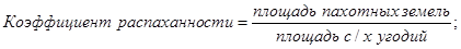 Из данных таблицы 1 видно, что за рассматриваемые годы общая земельная площадь претерпела изменения и сократилась на 547 га. В том числе площадь сельскохозяйственных угодий сократилась на 586 га и составила в 2007 году 3998 га. При этом площадь пашни составила 3261 га, что ниже уровня 2005 года на 479 га. Наименьший удельный вес имеют сенокосы и пастбища – 326 и 509 га, что составляет соответственно 6,4 и 9,9%. Так же в структуре земельных угодий 9 га занимают многолетние насаждения. А прочие земли составляют 518 га, что связано с наличием лесных массивов, болот, противоэрозионных и водоохранных насаждений. Для анализа необходимо не только рассмотреть наличие земельных угодий, а так же проанализировать насколько интенсивно их использование. Поэтому для характеристики земельных ресурсов немаловажным является определение показателей распаханности (табл. 2). Таблица 2 Показатели распаханности земельных угодий