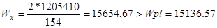 = Определяем требуемый момент сопротивления балки с учетом упругой работы материала по формуле 1.5: WPL
